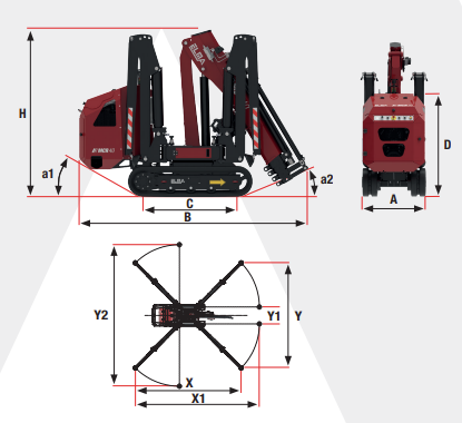 - Teleskopausleger mit 4 hydraulischen Verlängerungen: Präziser und flexibler Einsatz durch hydraulisch ausfahrbaren Ausleger.