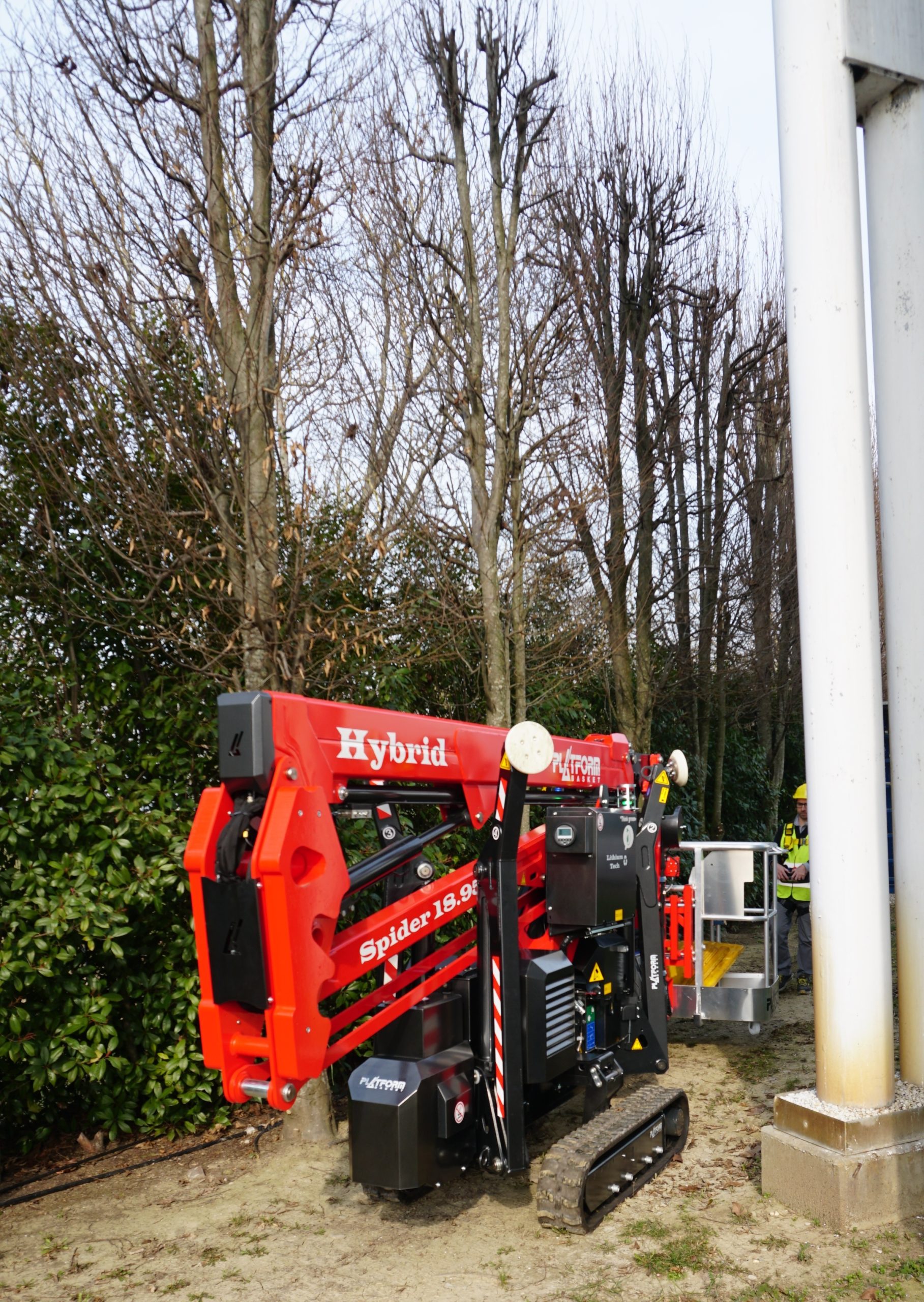 Die Spider 18.95 zeichnet sich durch ihren neuen, leistungsstarken Teleskoparm aus, der eine erhöhte Tragfähigkeit und Reichweite ermöglicht. Zudem wurde die Energieführung ins innere des Teleskops verlegt, um so mehr Schutz vor herabfallenden Gegenständen oder auch beim Baumschnitt zu haben.